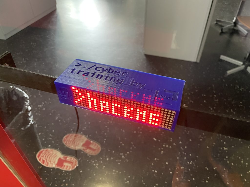 Vous souhaitez relever le défi ? ça se passe au 1er étage du bâtiment Nanterre 1. Mais attention, l’Hackathon change tous les soirs à minuit automatiquement et ce sera un nouveau challenge demain matin. Et si vous parvenez à pirater le système, vous pourrez changer le texte de l’afficheur.